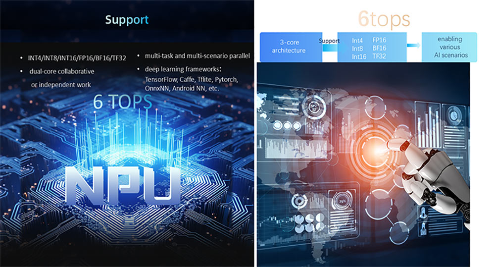 4. Edge AI: Інтегровані 6 топів NPU дозволяють розробникам будувати програми з низькою затримкою AI, таких як системи розпізнавання обличчя та розумні датчики.